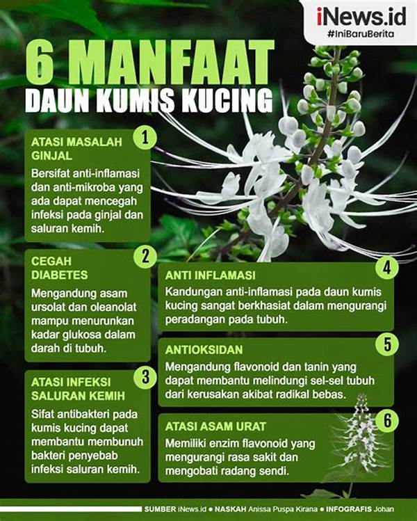 Mengapa fungsi ini penting? Bayangkan tubuhmu sebagai sebuah sistem pipa air. Jika ada penyumbatan, tentu aliran air tidak akan lancar, bukan? Nah, daun kumis kucing membantu ‘membersihkan pipa-pipa’ dalam tubuh kita, memastikan bahwa semuanya mengalir dengan lancar. Sebuah penelitian yang dipublikasikan dalam Jurnal Ilmu Kedokteran menyebutkan bahwa penggunaan daun kumis kucing dapat meningkatkan volume produksi urine hingga 20%.